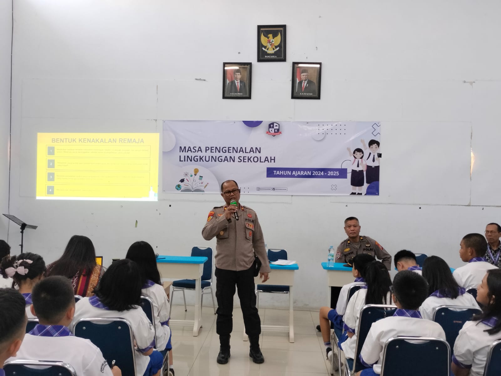 Makassar – Memasuki tahun ajaran baru 2024/2025, Kapolsek Bontoala, Kompol Muhammad Idris, SH., MH., melaksanakan kegiatan sambang ke Sekolah Kristen Kalam Kudus yang terletak di Jalan Sungai Cerekang, Makassar, Selasa (16/07/2024). Kegiatan ini diadakan dalam rangka pemberian materi kepada siswa baru yang sedang menjalani Masa Pengenalan Lingkungan Sekolah (MPLS).