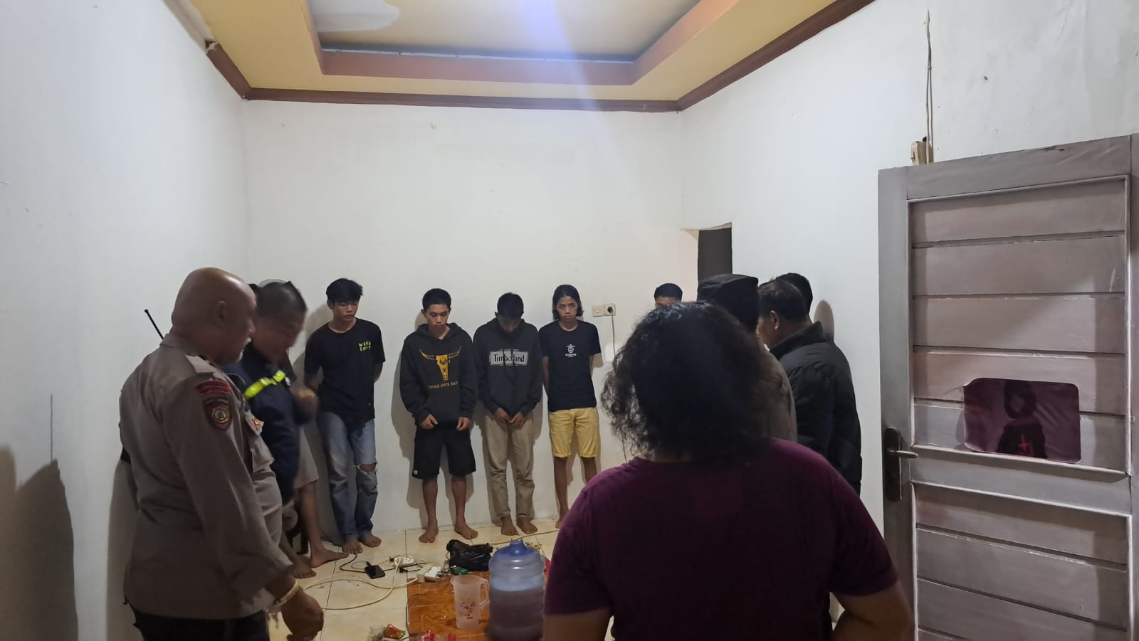 Dipimpin oleh Pawas Aiptu Abd. Halik Kamiseng bersama KSPKT Aiptu Julianto dan Bhabinkamtibmas Aiptu Alfaisal, tim kepolisian bersama Forum Kemitraan Polisi dan Masyarakat (FKPM) Manggala langsung menuju lokasi dan menemukan delapan pemuda tengah asik berpesta miras.