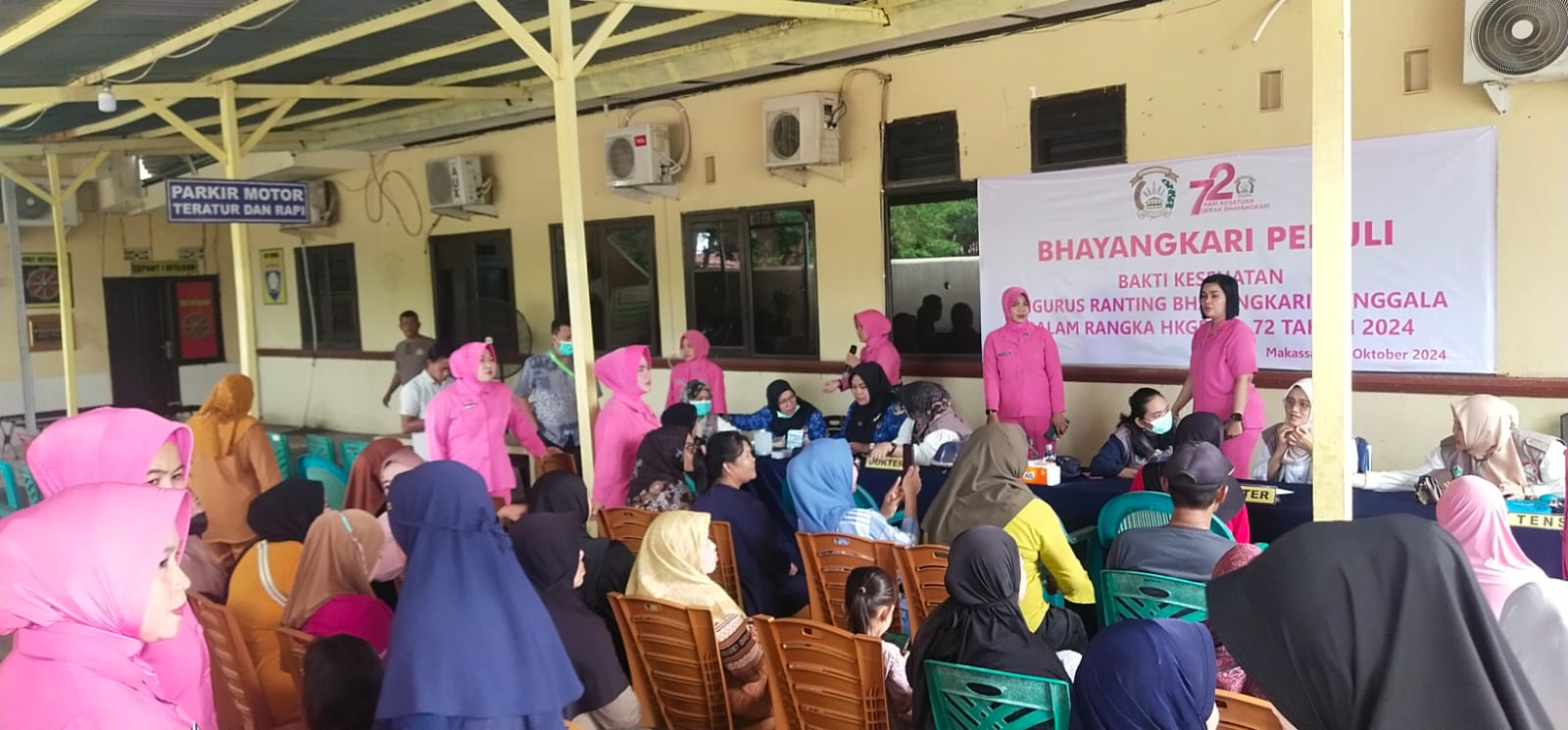 Makassar – Dalam rangka memperingati Hari Kesatuan Gerak Bhayangkari (HKGB) ke-72 tahun 2024, Bhayangkari Ranting Manggala menyelenggarakan kegiatan bakti sosial yang berlangsung di Halaman Mako Polsek Manggala, Jl. Lasuloro Raya No.171, Kamis (17/10/2024) pagi.