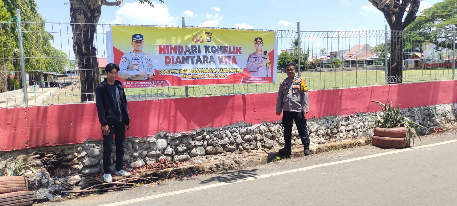 Spanduk yang bertuliskan pesan dari Kapolrestabes Makassar, “Ayo bersama kita Sukseskan Pilkada tahun 2024 yang Sehat, Damai dan Sejuk,” dipasang di pusat-pusat keramaian dan persimpangan jalan. Kegiatan ini bertujuan untuk mengajak masyarakat berperan aktif dalam menciptakan situasi yang aman dan tertib menjelang pesta demokrasi.