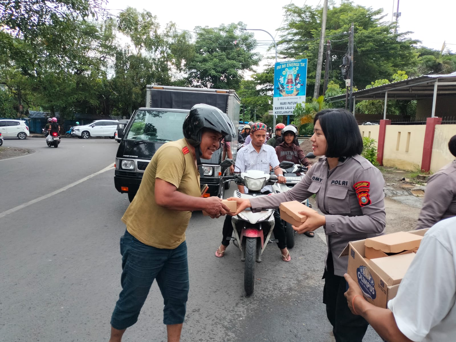 Kegiatan ini bertujuan untuk membantu masyarakat yang masih dalam perjalanan saat waktu berbuka puasa tiba. Sejumlah personel tampak antusias membagikan takjil kepada pengendara roda dua maupun roda empat, tukang bentor, serta pejalan kaki yang melintas di sekitar lokasi.