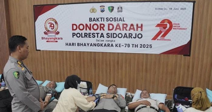 Jakarta – Dalam rangka menyambut Hari Bhayangkara ke-79, Polresta Sidoarjo menggelar kegiatan bakti sosial donor darah. Ada ratusan peserta dari berbagai elemen masyarakat yang turut serta dalam bakti sosial ini.