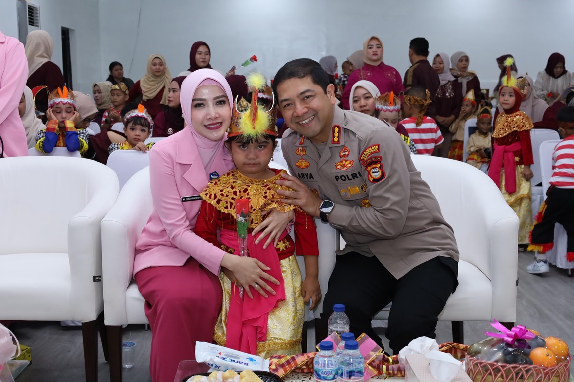 Makassar– Kapolrestabes Makassar Kombes Pol Arya Perdana, SH,SIK,M.Si bersama Ketua Bhayangkari Cabang Tabes Makassar Ny. Emma Arya Perdana menghadiri acara penamatan TK Kemala Bhayangkari Cabang Tabes Makassar Tahun Ajaran 2024/2025 di Aula Mappaodang Polrestabes Makassar.