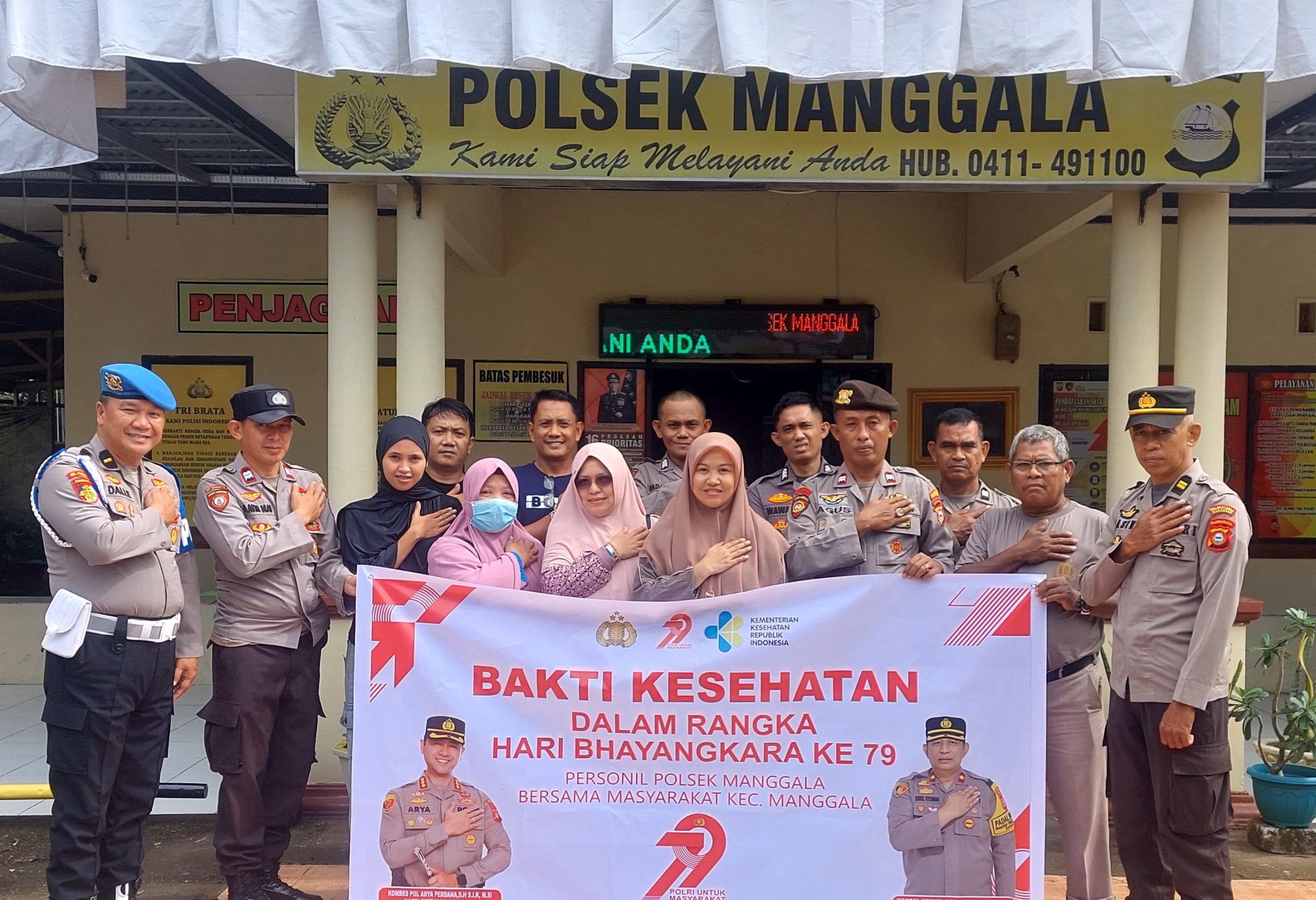 Makassar – Dalam rangka memperingati Hari Bhayangkara ke-79, Kepolisian Sektor Manggala Polrestabes Makassar menggelar kegiatan bakti kesehatan yang melibatkan masyarakat, Kamis (26/6/2025). Kegiatan ini berlangsung di halaman Mapolsek Manggala, Jalan Lasuloro Raya, Kelurahan Manggala, Kecamatan Manggala, dan bekerja sama dengan tenaga kesehatan dari Puskesmas Antang.