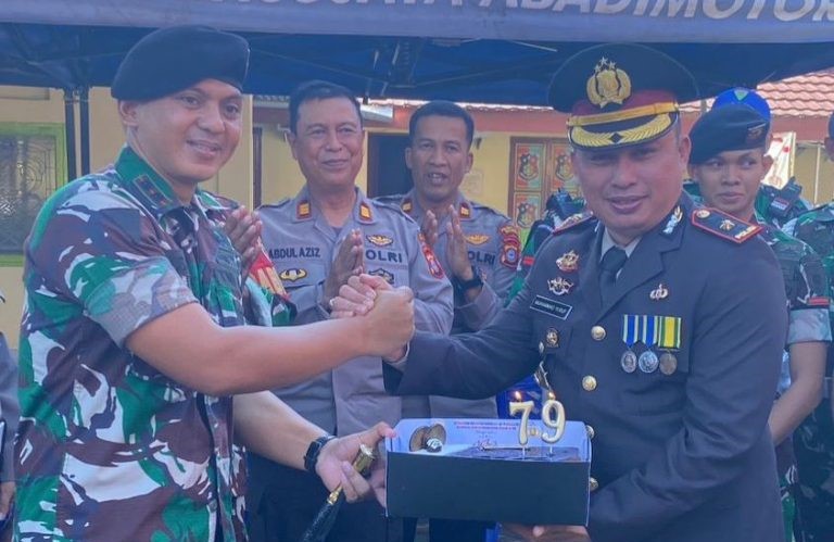 Makassar — Disela-sela kegiatan Syukuran Dirgahayu Bhayangkara ke-79, Letkol Kav Kuswara, S.IP, Komandan Batalyon Kavaleri 10/Mendagiri, bersama jajaran memberikan kejutan istimewa kepada Kapolsek Tamalanrea Kompol Muhammad Yusuf, S.Sos., M.M. di Mapolsek Tamalanrea, Selasa (1/7/2025) siang.