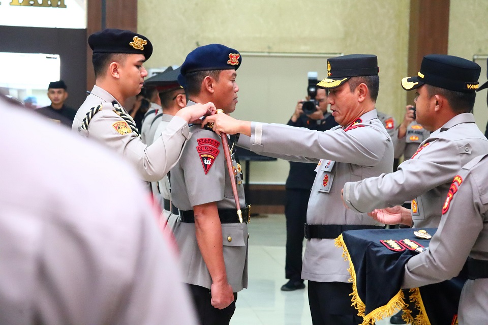 MAKASSAR – Kapolda Sulawesi Selatan, Irjen Pol. Drs. Rusdi Hartono, M.Si., didampingi Ketua Bhayangkari Daerah Sulsel, Ny. Irena Rusdi Hartono, memimpin langsung Upacara Serah Terima Jabatan (Sertijab) dan Pelantikan Pejabat Utama serta Kapolres Jajaran Polda Sulsel di Aula Mappaodang Mapolda Sulsel, Selasa (08/07/2025).
