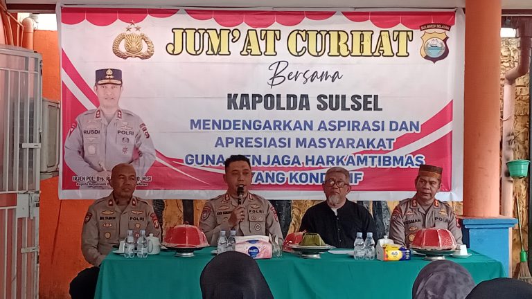 Makassar – Jumat Curhat Polda Sulawesi Selatan (Sulsel) di kantor Kelurahan Maradekaya Utara, Kec. Makassar, Kota Makassar di hadiri oleh Wakil Direktur ( Wadir) Binmas Polda Sulsel Andi Kumara SH, SIK, MSI. Jumat (11/07/2025).