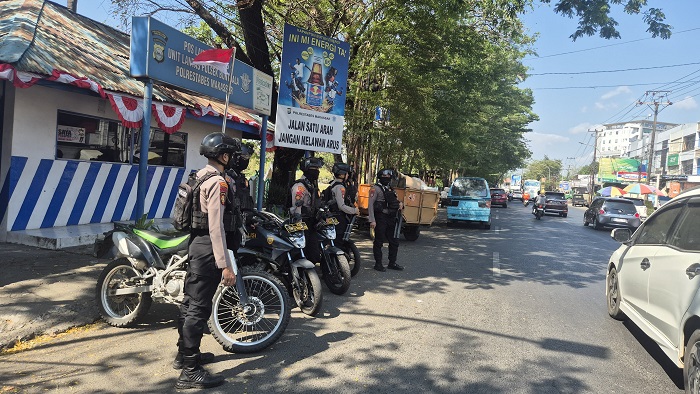 Makassar — Personel Patroli Perintis Presisi Satuan Samapta Polrestabes Makassar Unit Turjawali 633 kembali melaksanakan patroli rutin di sejumlah titik wilayah hukum Polrestabes Makassar, Rabu siang (30/7/2025).
