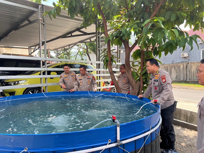 “Maka kita manfaatkan lahan dengan membuat kolam dan pekarangan pangan bergizi” Kata Kombes Aris.