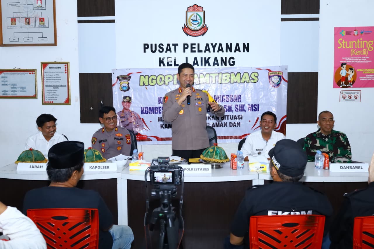 Ngopi Kamtibmas di Kelurahan Laikang berlangsung hangat dengan dialog terbuka antara warga, aparat, dan pemerintah setempat. Kapolrestabes Makassar menegaskan bahwa keamanan bukan hanya tugas Polri dan TNI, tetapi juga membutuhkan dukungan penuh dari masyarakat.