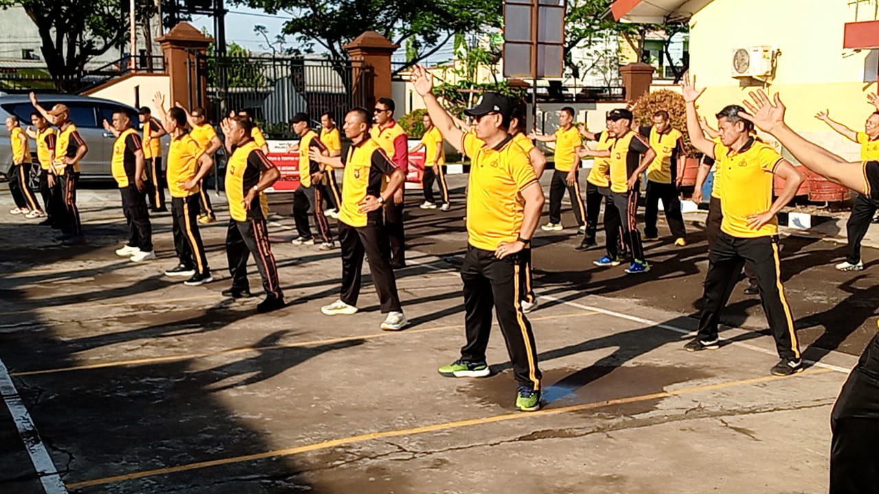 Kegiatan senam bersama yang dilakukan oleh personil Polsek Biringkanaya serta Bhayangkari Ranting Polsek Biringkanaya dipandu oleh struktur Senam profesional