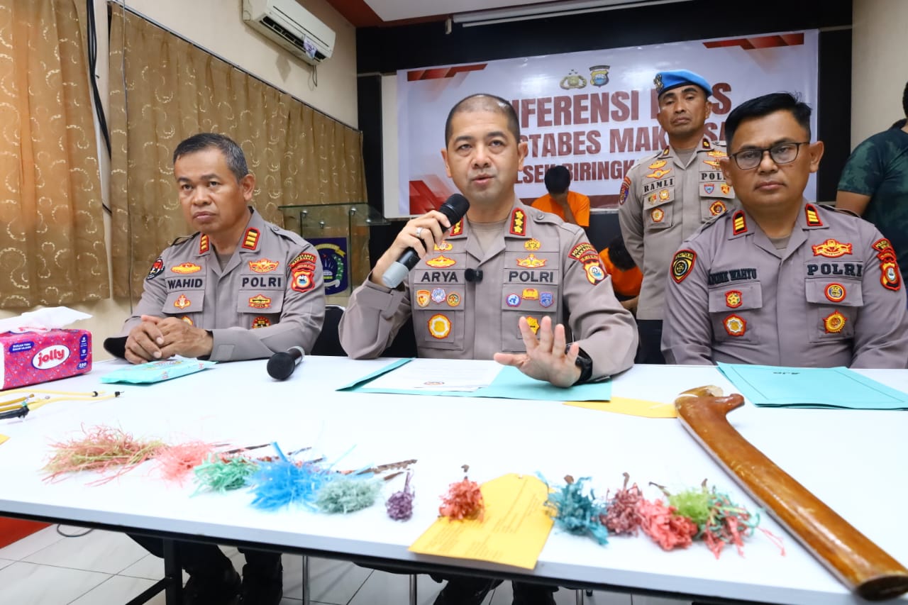 Kapolrestabes Makassar, Kombes Pol Arya Perdana, S.H., S.I.K., M.Si, dalam konferensi pers Minggu (14/12/2025) yang digelar di Polsek Biringkanaya, didampingi Kapolsek Biringkanaya AKP Andik Wahyu Cahyono, Kasi Humas Polrestabes Makassar AKP Wahiduddin, serta Kasi Propam Kompol Ramli, mengungkapkan bahwa pihaknya menerima informasi adanya sekelompok geng motor yang melakukan konvoi (rolling) dan berencana melakukan tawuran.
