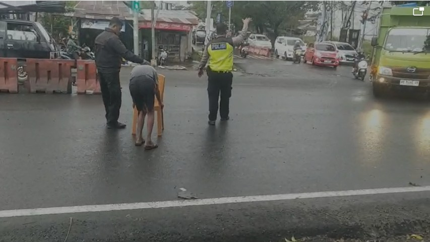 Lansia tersebut tampak kesulitan menyeberang jalan karena keterbatasan fisik. Dengan menggunakan kursi plastik sebagai alat bantu, ia berupaya melintasi jalan yang saat itu dipadati kendaraan. Melihat kondisi tersebut, personel Lantas Polsek Biringkanaya sigap memberikan pertolongan demi keselamatan lansia tersebut.