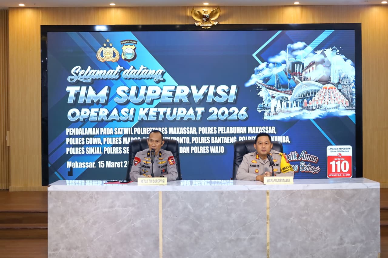Makassar – Tim Supervisi Operasi Ketupat 2026 dari Mabes Polri melaksanakan kegiatan pendalaman kepada satuan wilayah jajaran yang digelar di Aula Mappaoddang Polrestabes Makassar, hari Ahad (15/3/2026).
