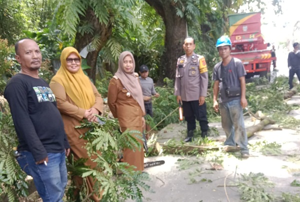 Berua – Dalam rangka menjaga keamanan dan keselamatan masyarakat, Bhabinkamtibmas Kelurahan Berua bersama Lurah Berua melaksanakan kegiatan pemantauan pemangkasan pohon yang berpotensi membahayakan pengguna jalan dan warga sekitar, Senin 30/3/2026.