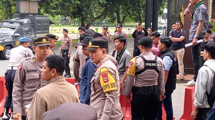 Kapolsek Biringkanaya Akp Setiawan A Malik, S.I.K didampingi personil Intelkam melakukan negosiasi dan memfasilitasi perwakilan massa aksi agar diterima aspirasinya oleh pihak Penyidik Krimum Polda Sulsel.