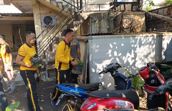 Makassar, Polsek Ujung Pandang_Usai melaksanakan apel pagi, personil Polsek Ujung Pandang melaksanakan kegiatan kerja bakti/kurvei bersama di halaman belakang mako polsek, Jumat pagi (24/4/2026)